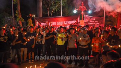 maduraindepth.com – Suporter dan pecinta sepak bola di Kabupaten Sampang, Madura, menggelar aksi menyalakan 1000 lilin dan doa bersama di halaman Pasar Margalela Sampang, Senin (3/10) malam. Aksi solidaritas tersebut dilakukan guna mengenang tragedi Kanjuruhan, Malang, pada 1 Oktober 2022.